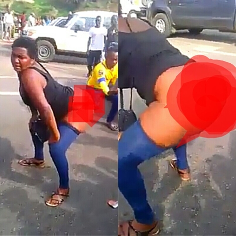 A young lady has been captured in a video clip where she stepped into the middle of a highway, pulled down her trousers, pants and starts to shake her massive bare buttocks to the amazement of onlookers.